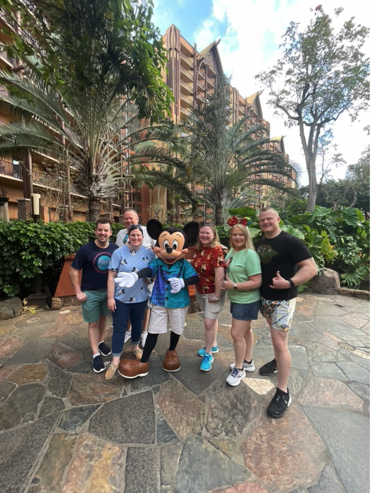 During our meal, we took photos with Minnie, Stitch, Goofy, and Pluto, who came around to each table. Some characters had props, including the Stitch had a (plastic) raw fish in his apron pocket that he would hand kids to have for breakfast. Each character took the time to go around the table and get pictures with everyone.